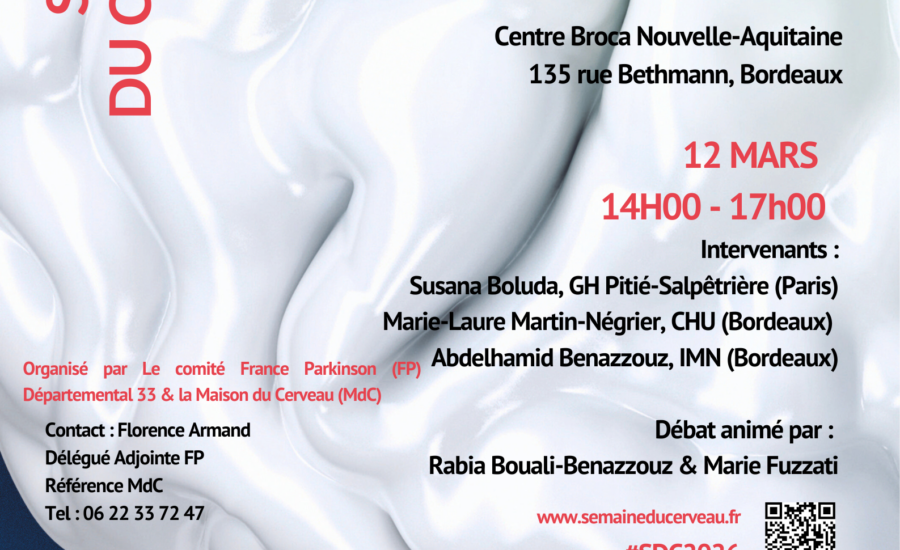 À l’occasion de la Semaine du cerveau, le comité départemental France Parkinson 33 et la Maison du Cerveau souhaitent mettre en lumière un sujet essentiel pour l’avancée des connaissances en neurosciences : le don du cerveau humain. Dans ce cadre, ils ont le plaisir de co-organiser un après-midi de sensibilisation intitulé :